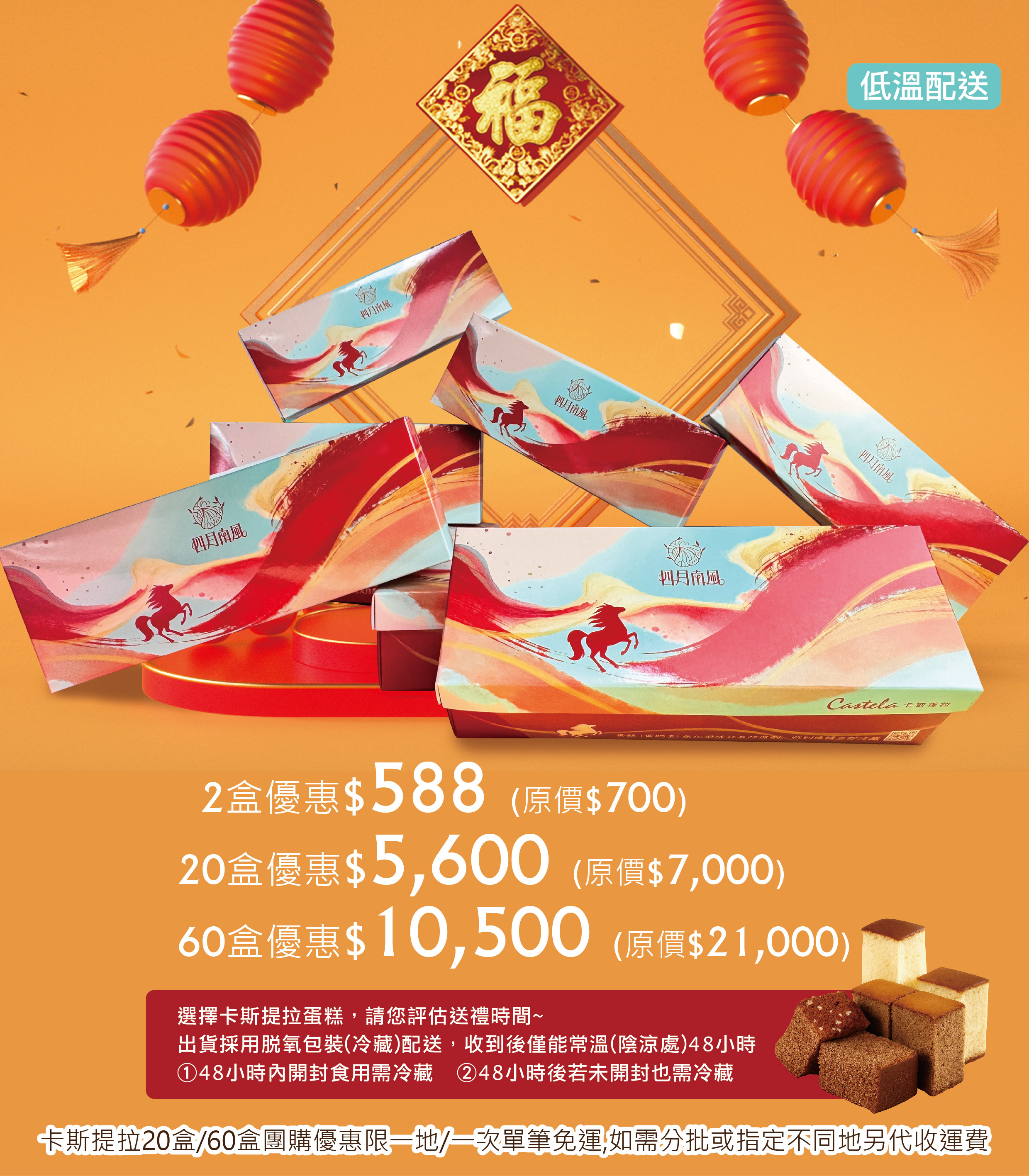 為確保蛋糕新鮮,一律採用脫氧包裝(低溫)配送。