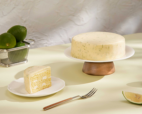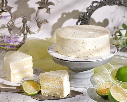 札實的戚風海綿蛋糕, 白巧克力檸檬甘納許淋面 , 綠檸檬皮香氣讓空氣中多了點初戀滋味~ 多層次的乳酪抹醬與清爽夾餡蛋糕體, 彈奏出酸酸甜甜的曲調~