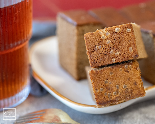 無添加蜂蜜及任何化學成分,採用天然麵粉,搭配新鮮雞蛋,並著重於糖發酵後所散發後如蜜的馥郁香氣;未完全融化的雙目糖沉澱於下,鬆軟綿密的蛋糕底層覆蓋著軟脆的口感、焦糖的香甜,絕妙令人回味。