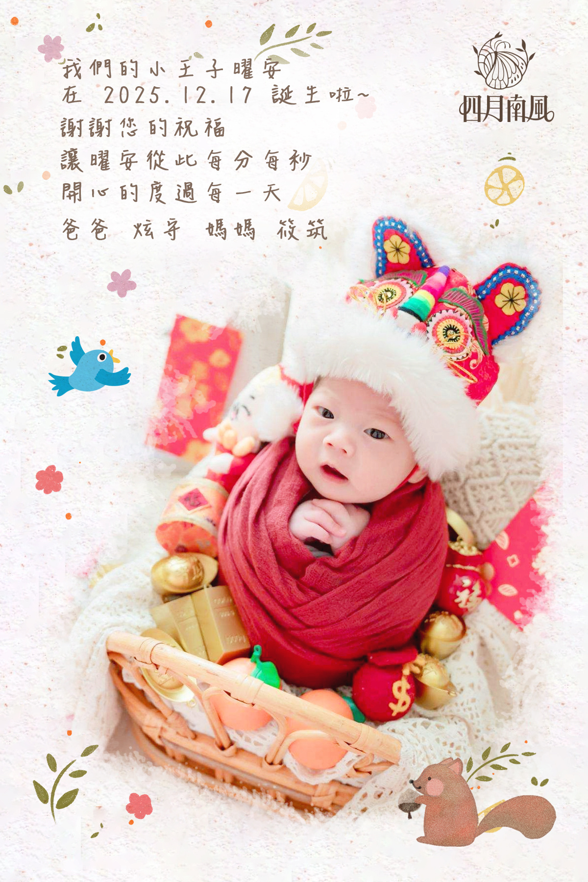 無提供單印賀卡的服務,本商品僅供購買彌月禮盒加購。 四月南風專屬客製化彌月卡~ 給寶寶一輩子的紀念,永遠的祝福