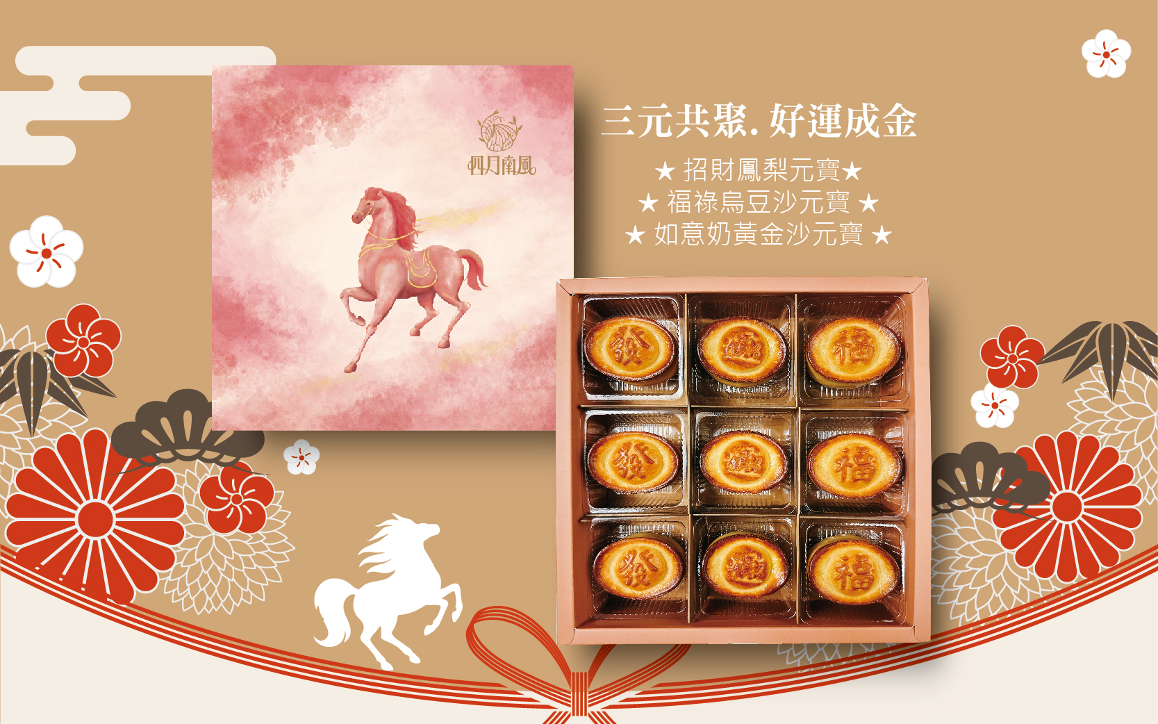 內容:招財鳳梨元寶/如意奶黃金沙元寶/福祿烏豆沙元寶各3個