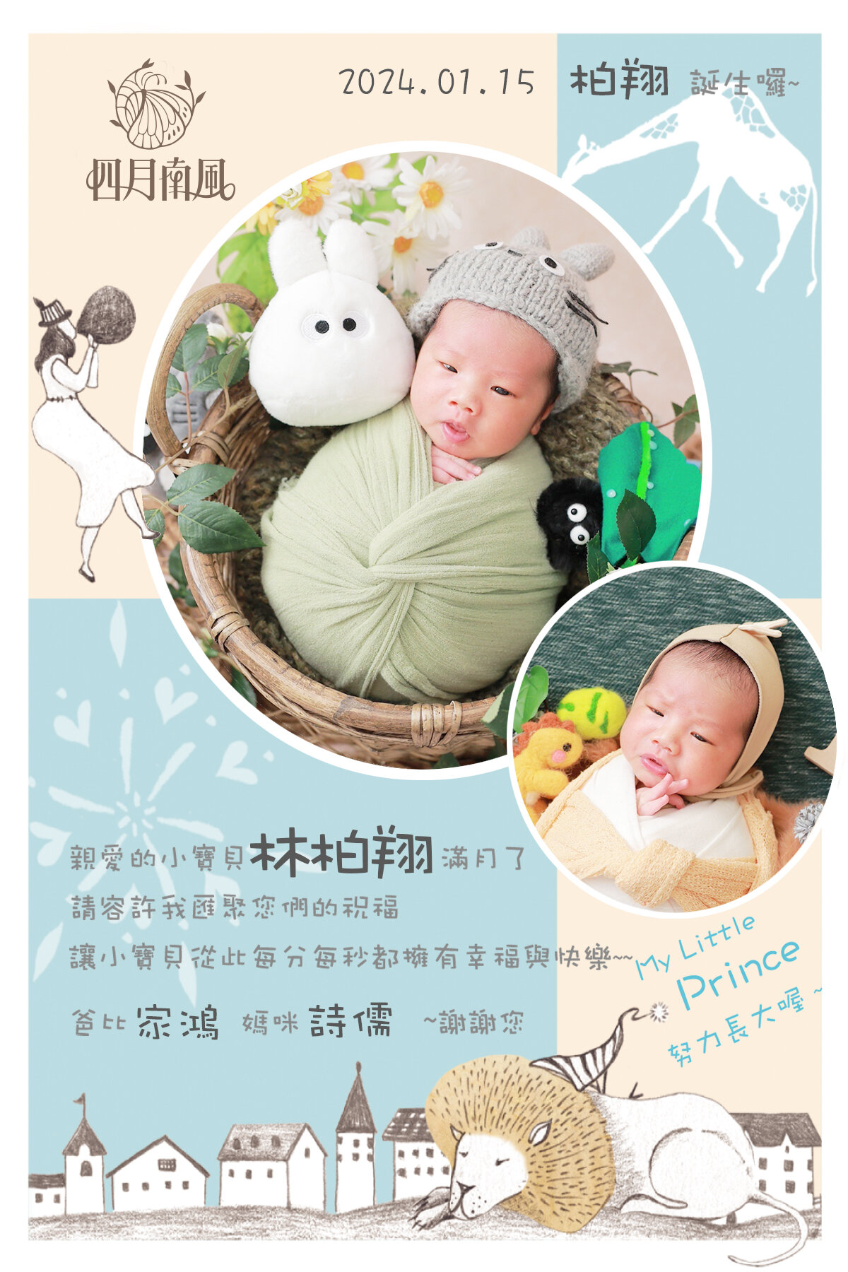 四月南風專屬客製化彌月卡 給寶寶一輩子的紀念,永遠的祝福