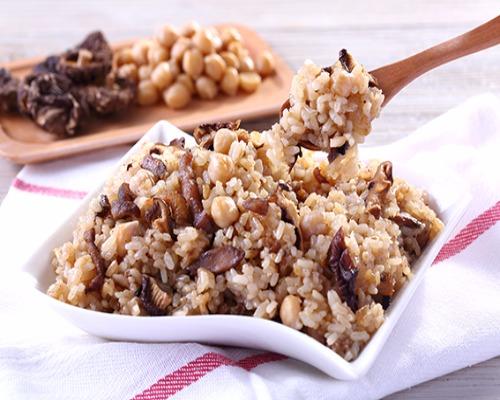 建議以電鍋回蒸食用口感最佳,回蒸時於油飯上加蓋,避免過多水分回滲,導致口感軟爛。