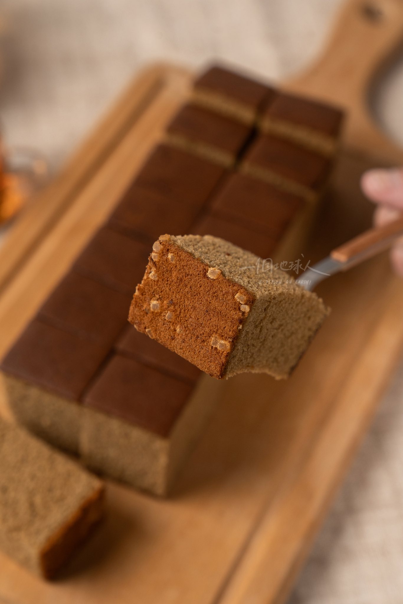 精選顆粒大的雙目糖,運用工法時間的掌握,讓雙目糖與蛋糕體的質地融合得恰到好處,