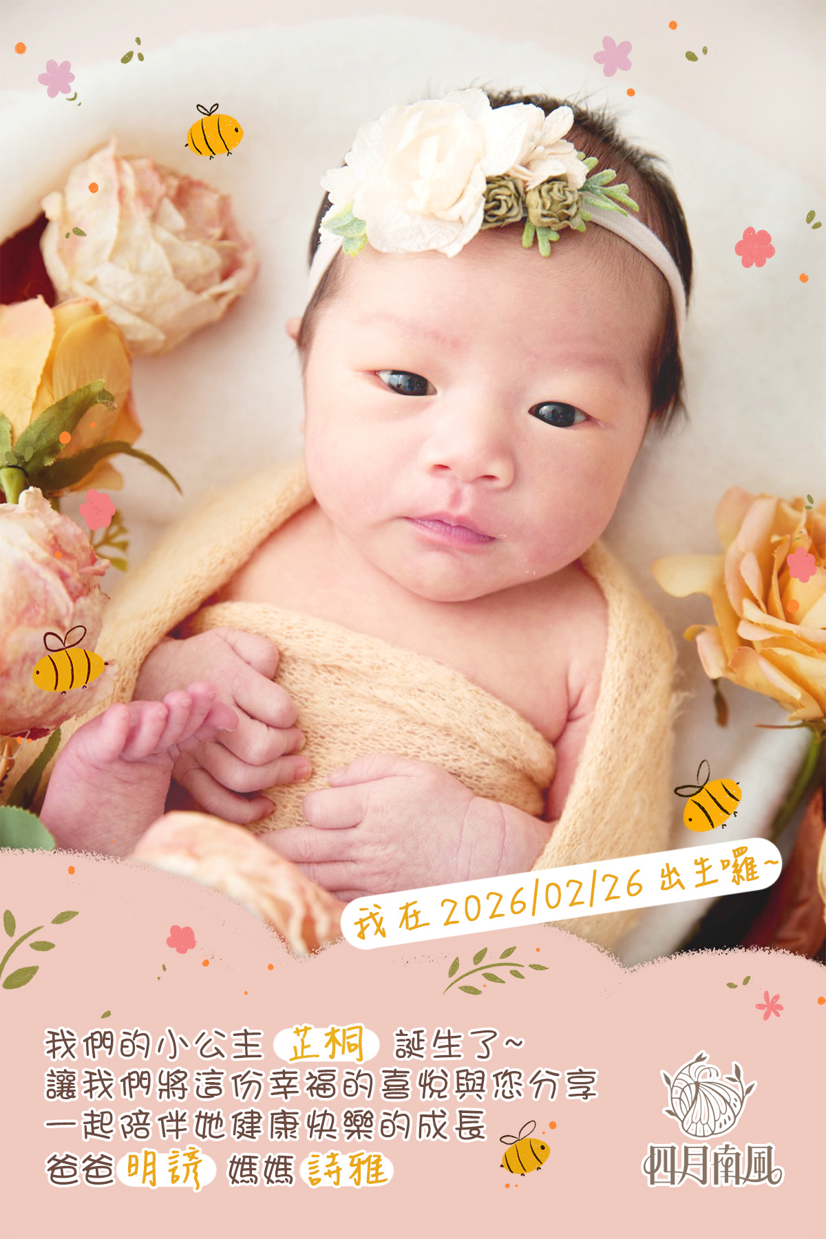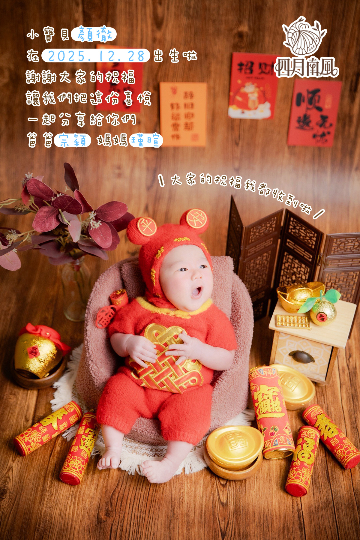 四月南風專屬客製化彌月卡 給寶寶一輩子的紀念,永遠的祝福