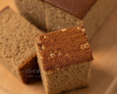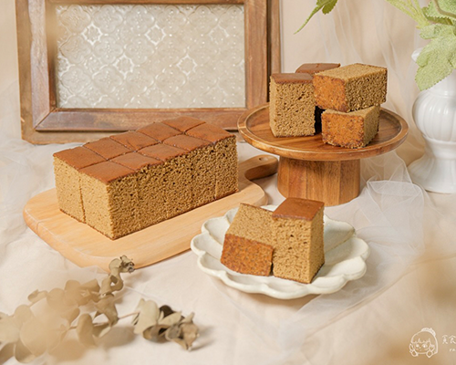 精選顆粒大的雙目糖,運用工法時間的掌握,讓雙目糖與蛋糕體的質地融合得恰到好處,